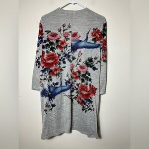 Quacker Factory XL Open Front Cardigan Lightweight Art To Wear Floral Bird