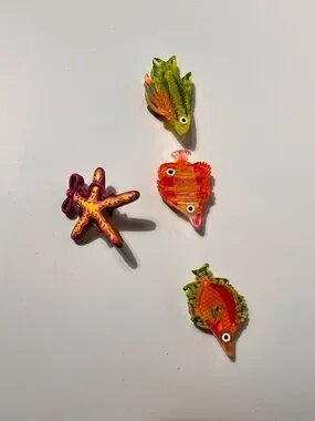 Vintage Quacker Factory button covers. Found them in their original bubble wrap. Never been used. Some nautical, some stars and some snowflakes and some snowmen. 28 in total. One of them (the starfish) is actually a pin instead of a button cover but found with the others.