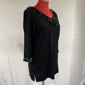 Quacker Factory black tunic sweater sequins embellishment neck and cuff size S