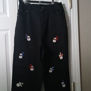 Quacker Factory black snowmen black wide leg jeans winter Sz Large (14/16) NWT