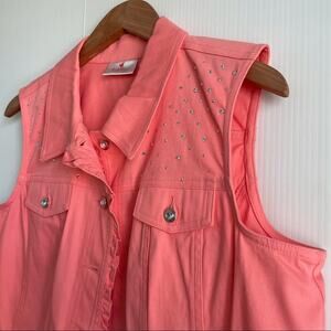 Quacker Factory by Jeanna Bice rhinestone vest coral sz Medium