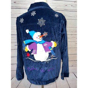 Quacker Factory cardigan Medium Ugly Christmas Sweater Snowman Velour Jacket