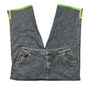 Quacker Factory fun cropped high waist green trim blue jeans size Large