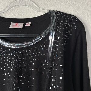 Quacker Factory plus size 1X tank cardigan duet black sequin trim cotton blend