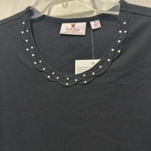Quacker Factory shirt black with sequins around collar. New with some tags . 3/4 sleeves