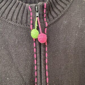 Quacker Factory sweater Womens XL long sleeve zip up Black pink Nordic Snowflakes.