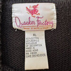 Quacker Factory sweater XL sleeve zip up Black pink Nordic Snowflakes