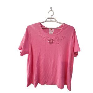 Quacker Factory sweater womens 3X pink rhinestone snowflake holiday short sleeve