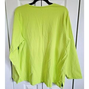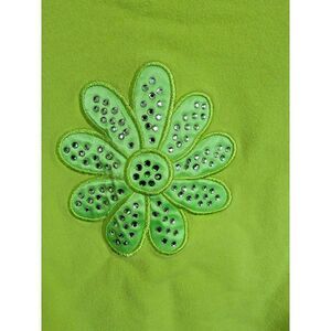 Quacker Factory 3/4 Sleeve Stretch Knit Top Sz Large Lime Green Beaded Flower