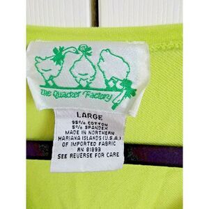 Quacker Factory 3/4 Sleeve Stretch Knit Top Sz Large Lime Green Beaded Flower. Made in the USA.