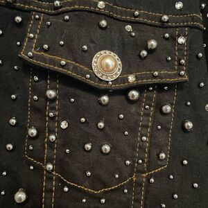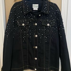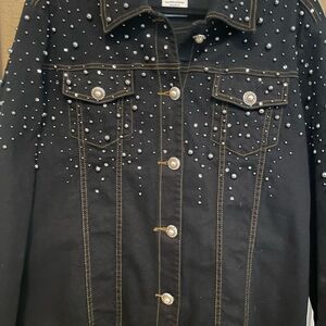 Quacker Factory Dark Black Denim Rhinestone Silver Beads Women’s Jean Jacket 1X