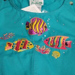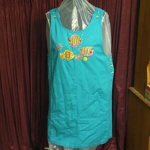 Quacker Factory Jumper Dress Lg New Sleeveless Cotton Fish Coral Front Pockets