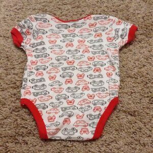 Quacker Jack Boys size 0-3 months white black red onesie car truck dog print