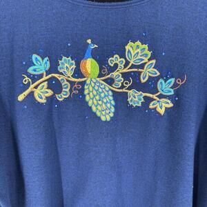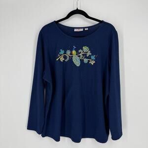 Quacker factory top 1x navy blue peacock sweater sequin casual plus long sleeve