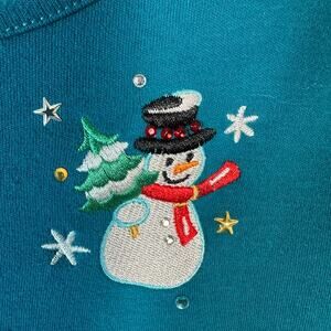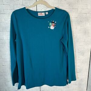 Quacker factory womens long sleeve T-shirt embroidered snowman holiday Christmas