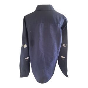 Quacker Factory Blue Floral Button Down Blouse Size Small