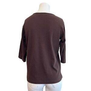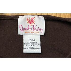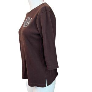Quacker Factory Womens Small Beaded Rose Studded Embellished Blouse Brown Top