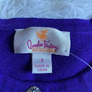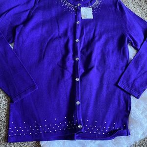 Quacker Factory Purple Rhinestone Button Front Sweater NEW Size Small