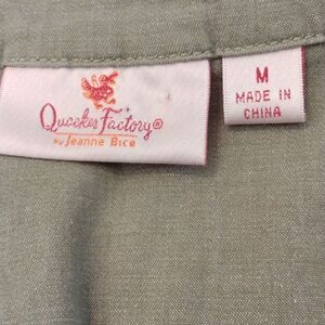 This pretty top has some surprises. Button up front with sparkly buttons, even one on the sleeves that will shorten the sleeve with a tab. The front is embellished with sparkly diamonds in rhinestone, only one stone missing, see photo. Size M, there is a little stretch, measures 44 at chest, 48 at slightly curved bottom hem. 28 long from shoulder to hem. Sleeves 23 long. This will be your go-to.