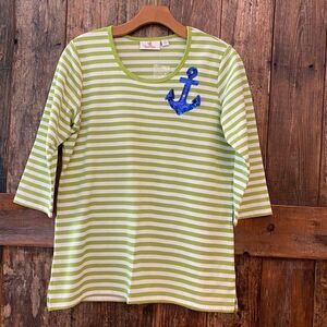 Beautiful NWT Nautical Lime Green Stripe Top with a blue sequined anchor.