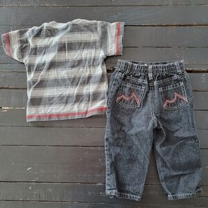 Quad Seven Baby Boy 24 Months Two Piece Outfit Set Grey Short Sleeve Shirt Jeans