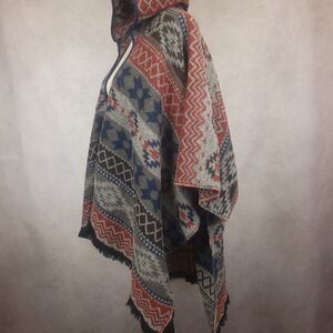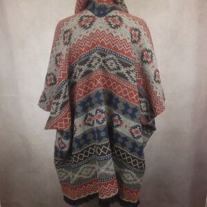 Southwestern print hooded ruana with sleeves in excellent preowned condition with no visible signs of wear.