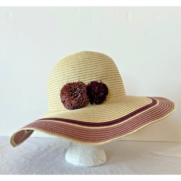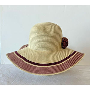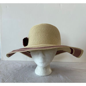Quagga Green Label Straw Hat Womens Floppy Beach Tan Purple Flower Accent OS