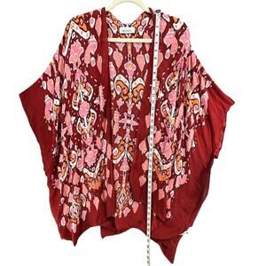 Quagga Kimono Cardigan One Size Red Colorful Floral Lightweight Boho Beach