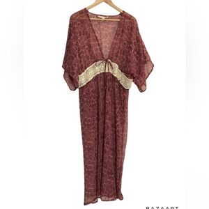 Quagga green label sheer maroon animal print tie front swim or beach coverup
