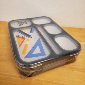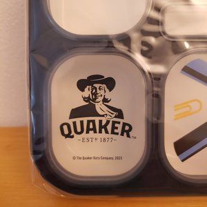 Brand new without tags in original sealed packaging Quaker Bento-style box school lunch food container. The Bento-style lunch box has a lockable lid, 5 compartments plus a spork. The lunch box measurements are approximately 6.75" x 9" x 1.75". 1000ml and Made in China.