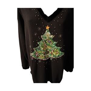 Quaker Factory Black Beaded Sequined Christmas Tree Sweater Women's Size XL