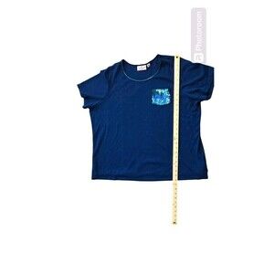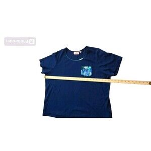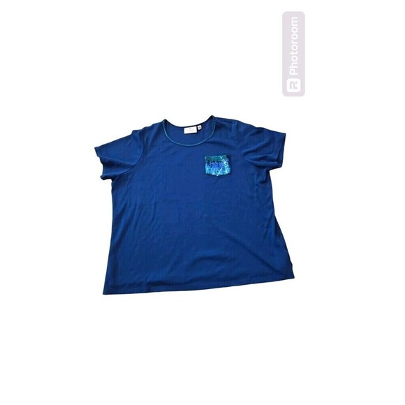 Quaker Factory By Jeanne Bice Blue Top Size 2X Bedazzled Pocket