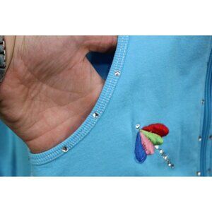 Quaker Factory Hooded Full Zip Cardigan-Rhinestones-Embroidery-Size Large