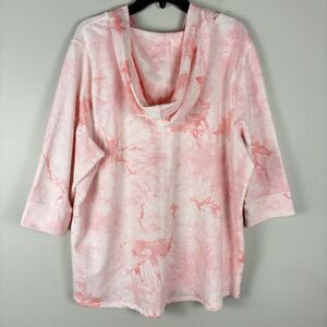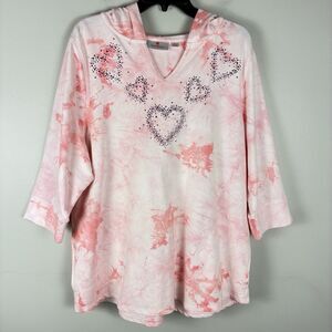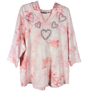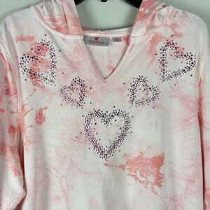 Quaker Factory Pink Rhinestones Hoodie Sweater Pullover Womans XL Sweatshirt