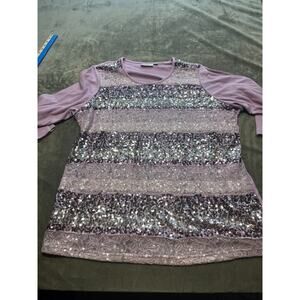 Quaker Factory Purple Stripe Sequin 3/4 sleeve Shirt Size 2X