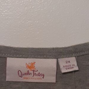 The T-shirt is available in size 2X and is part of the plus size type. Its solid pattern and easy care features make it a great addition to any wardrobe. Whether you're attending a holiday party or just running errands, this Quaker Factory T-shirt is a must-have.