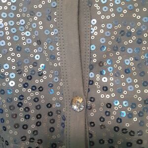 Quaker Factory Womens 3X XXXL Blue Long Sleeve Sequin Top Shirt