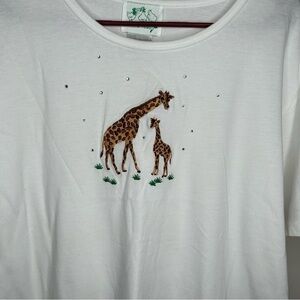 Quaker Factory Womens Giraffe Embroidered S/S Blouse Size 1X White . Smoke free home. Ships fast!