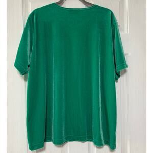 Quaker Factory Women's Green Velvet Embellished Short Sleeve Top Size X-LARGE. Polyester, spandex fabrics. Approx. measurements pit to pit 23 in. Top length 27 in. Pre-owned in good condition, no rips or holes.