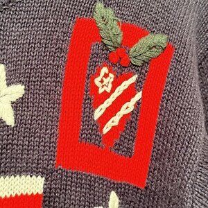 Quaker Factory Womens Medium Patriotic Snowman Cardigan Sweater Red White Blue