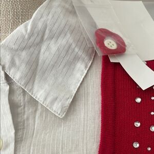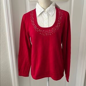 Quaker Factory Red Embellished Women's Lightweight Sweater White Collar