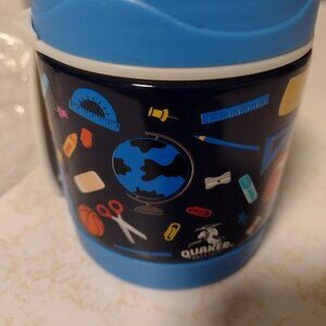 Super cute school themed thermos with a spork. Perfect for hot or cold foods. It is very well made and just the right size for little hands. It is approximately 5 inches tall and 3.5 inches wide. Would make a great gift.