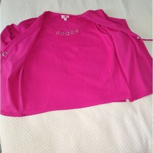 Quaker factory Large cotton sweater set with attached tank top, tie front, rhinestone details, 42" bust, 25" long.