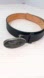 Elegant black leather belt featuring a sleek silver buckle. Perfect for adding a touch of sophistication to any outfit.