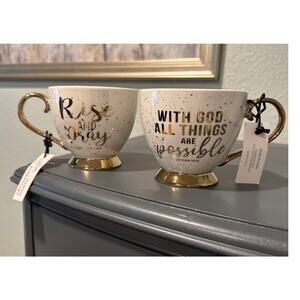 Everyday Gatherings Quality Porcelain Mugs Set of 2 Rise & Pray, With God All Things Are Possible