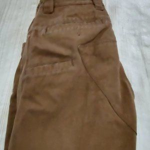 UPDATED! Added Photos and Details. High End, Designer Work Pants. These are extremely well constructed and well designed; the Brand (I'm sorry I forget the brand) was created by a builder, and many features came about from real, practical experience. For example the reinforced knees AND reinforced seat. They're constructed more like a chino, with a narrow waist band that rides on the hips (not above), and loaded with pockets (8 I think?), but the profile remains slim (Not clunky like cargo pants, or boxy like a carpenter's pant.) All the pockets are lined, and the stitching is meticulous, solid. Quality duck cloth comparable to the leading brand, just beginning to soften and show slight fading. Before I lost weight and lost about 2 inches around the middle, these were ome of the best fitting most comfortable work pants Ive ever worn. I cut out the labels because they irritate my skin, so I don't remember the brand. and there are frayed ends below the front belt loops where I removed 2 plastic d-rings. I only wore them for about 4 months before I took them out of circulation. Well worth the money I'm asking; these were built to last and will serve you well into the decade.
