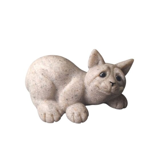 Charming vintage Quarry Critters Cat Cameron figurine from 2000. Made of durable resin stone, this smiling kitty adds a delightful touch to any collection or decor.