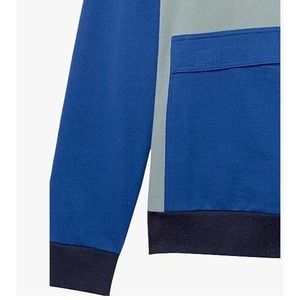 Details: Comfortable, lightweight, appropriate for all seasons, round collar, long sleeve, color block pattern, drawstring hoodie, poach pocket with velcro closure, quarter zipper