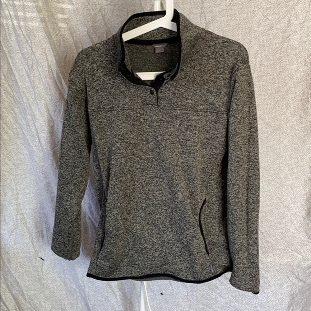 One through pocket like a hoodie, like a quarter zip but snap buttons instead. Excellent condition