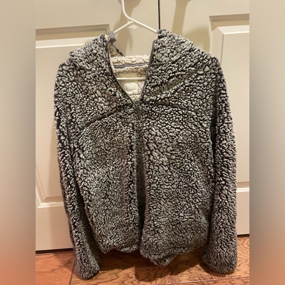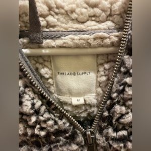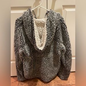 Fluffy gray hooded quarter-zip jacket. Size women’s Medium. Brand is Thread and Supply. In good condition, very warm and cozy!